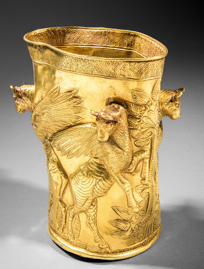 این اثر گواهی بر مهارت صنعتگران یونانی است و ردیف پایینی مرکز آن سه اسب را نشان می‌دهد که هر کدام توسط دو گریفین (موجود افسانه‌ای) از هم پاره می‌شوند.